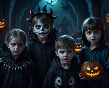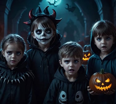 These kids set the stage for a spooky and fun night of trick-or-treating! Candy anyone?