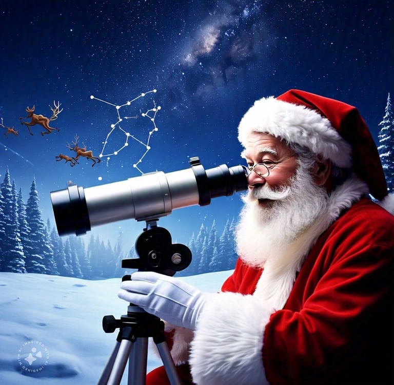 With clear skies at the North Pole, Santa enjoys stargazing. He spends hours and hours spotting constellations and dreaming about his next magical flight across the sky. Sometimes, he even spots the Big Dipper from his snowy rooftop!
