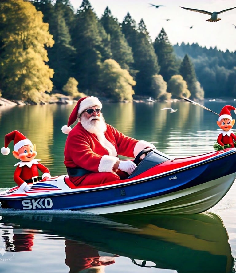 During the warmer months, Santa loves taking his elves out on a ski boat for some high-energy fun. Whether they're zipping across the water, trying their hand at water skiing, or just laughing together under the sun, it's a perfect way to bond and enjoy the off-season. Santa's famous "Ho, ho, ho!" can often be heard echoing across the waves!
